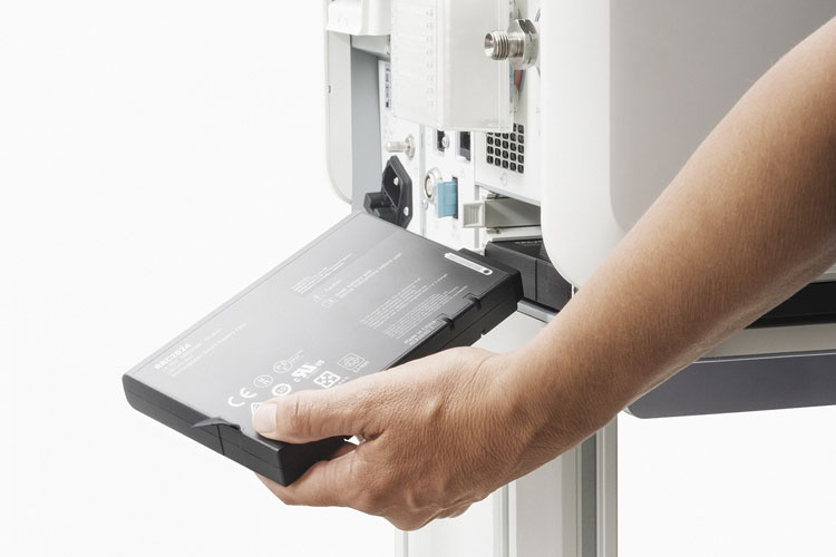Servo-air® se mueve con usted, evitando interrupciones para cambiar ventiladores, sistemas, baterías o cilindros de aire. La potente turbina está validada para durar 50.000 horas o 10 años. La energía de respaldo es proporcionada por hasta dos baterías intercambiables en caliente. Úselo para ventilación invasiva o no invasiva sin cambiar los circuitos de respiración. Y nuestra opción de terapia de alto flujo evita la necesidad de un sistema independiente.